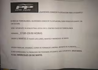 Todo el asunto parte de unas octavillas distribuidas en Torreblanca con distintivos del PP, invitando a los ciudadanos a acudir al centro cívico del distrito para buscar ayuda en materia de vivienda, empleo o alimentación. "Queremos conocer tu situación para poder ayudarte en un futuro. Ven y apúntate a nuestras listas en el centro cívico de Torreblanca", expone la octavilla, recogida por Europa Press.