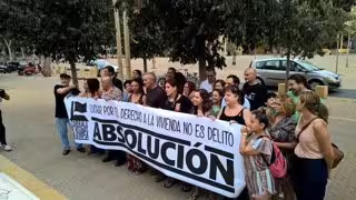 Los dos acusados, que han sido enjuiciados por separado en el Juzgado de lo Penal número 7, han recibido el apoyo de varias decenas de personas que se han concentrado frente al edificio Noga portando carteles con leyendas como 'Luchar por el derecho a la vivienda no es delito. Absolución', o 'No Ley Mordaza. Contra la Ley de Seguridad Ciudadana. No Silenciarán nuestra protesta'.