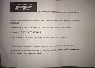 Todo el asunto parte de unas octavillas distribuidas en Torreblanca con distintivos del PP, invitando a los ciudadanos a acudir al centro cívico del distrito para buscar ayuda en materia de vivienda, empleo o alimentación. "Queremos conocer tu situación para poder ayudarte en un futuro. Ven y apúntate a nuestras listas en el centro cívico de Torreblanca", expone la octavilla, recogida por Europa Press.