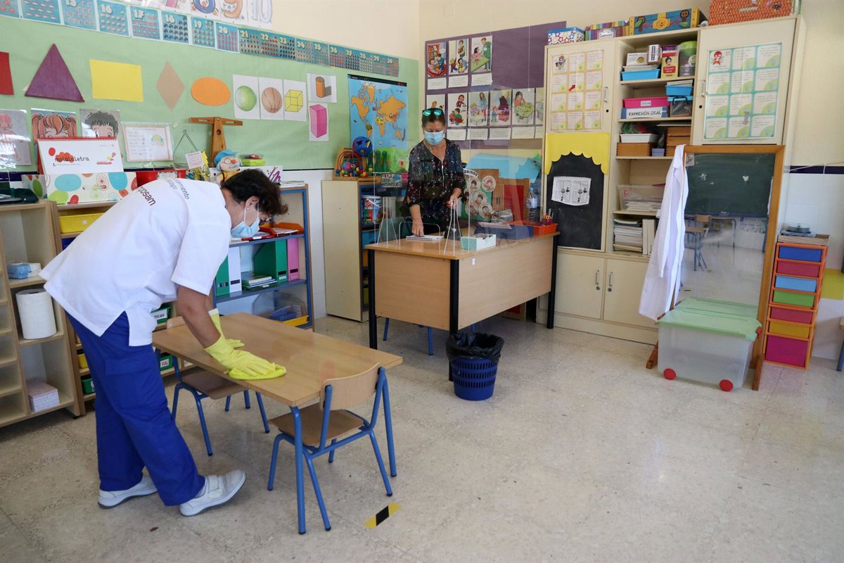 Archivo - Imagen de archivo de una limpiadora en un centro educativo de Andalucía - Álex Zea - Europa Press - Archivo