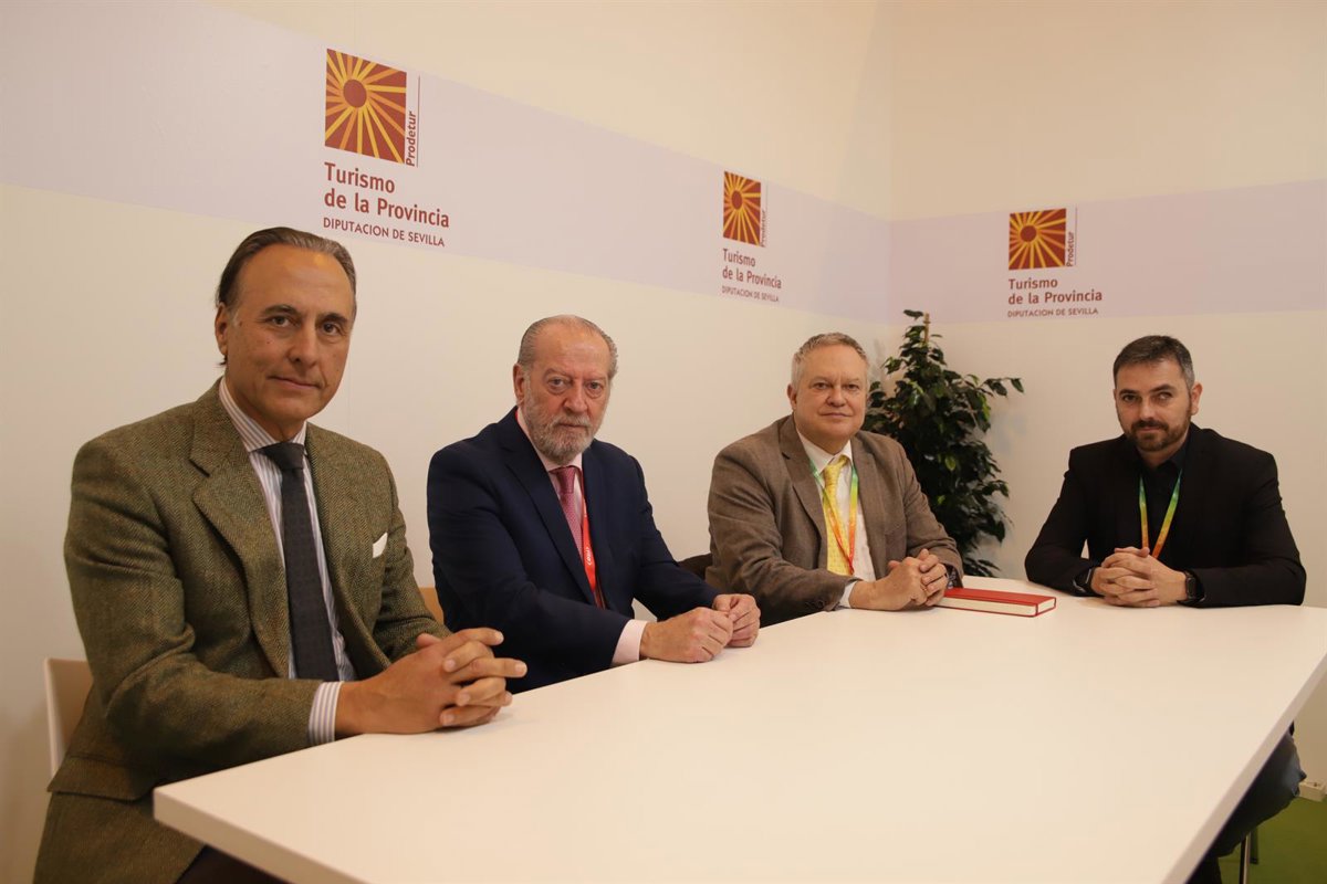 El presidente de la Diputación de Sevilla, Fernando Rodríguez Villalobos, ha mantenido un encuentro en el expositor de la provincia en la Feria Internacional del Turismo (Fitur), que se celebra en Madrid, con la junta directiva de la Asociación de Periodistas y Escritores del Vino, y de la Asociación de Vinos y Licores de la Provincia de Sevilla.