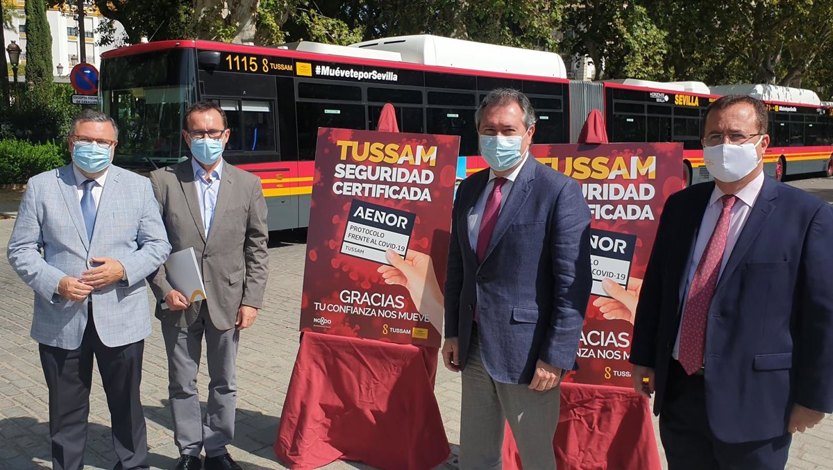 "La obtención de este certificado, que es de carácter voluntario, permite que los ciudadanos de Sevilla confíen aún más si cabe en un transporte público, seguro y eficaz. En esta línea de trabajo vamos a lanzar una campaña que tiene como objetivo trasladar esa imagen de seguridad y confianza en Tussam", ha destacado el alcalde de Sevilla, Juan Espadas, en la presentación de estos certificados.