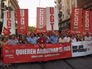 Por su parte, el secretario general de CCOO-A, también en Sevilla, ha apuntado que se abre un nuevo ciclo que será "duro" en el movimiento sindical, pero el sindicalismo de clase, los pensionistas, los que están en paro, los empleados públicos, entre otros, están en la calle para decir "al Gobierno de España que no se van a conformar con lo que están haciendo, que es llevar el país a la ruina, generando desigualdad, empobreciendo al país y dando una malísima imagen de España fuera".