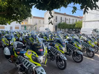 Motocicletas aparcadas en la Comandancia de la Guardia Civil de Córdoba que dan cobertura a la Vuelta Ciclista a España. - GUARDIA CIVIL