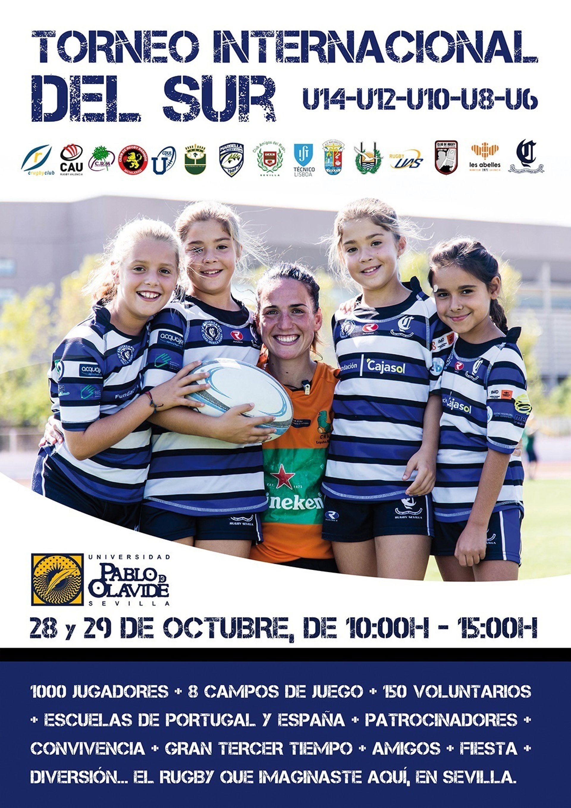 La Universidad Pablo de Olavide (UPO) acogerá este fin de semana 28 y 29 de octubre el Torneo Internacional del Sur, el mayor torneo de rugby del sur de Europa. Este evento reunirá en las instalaciones deportivas de la UPO a más de 1.200 jugadores de entre 4 y 14 años, 80 equipos y 15 clubes.