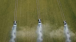 Imagen de recurso de vehículos agrículos en pleno trabajo sobre un cultivo. - US