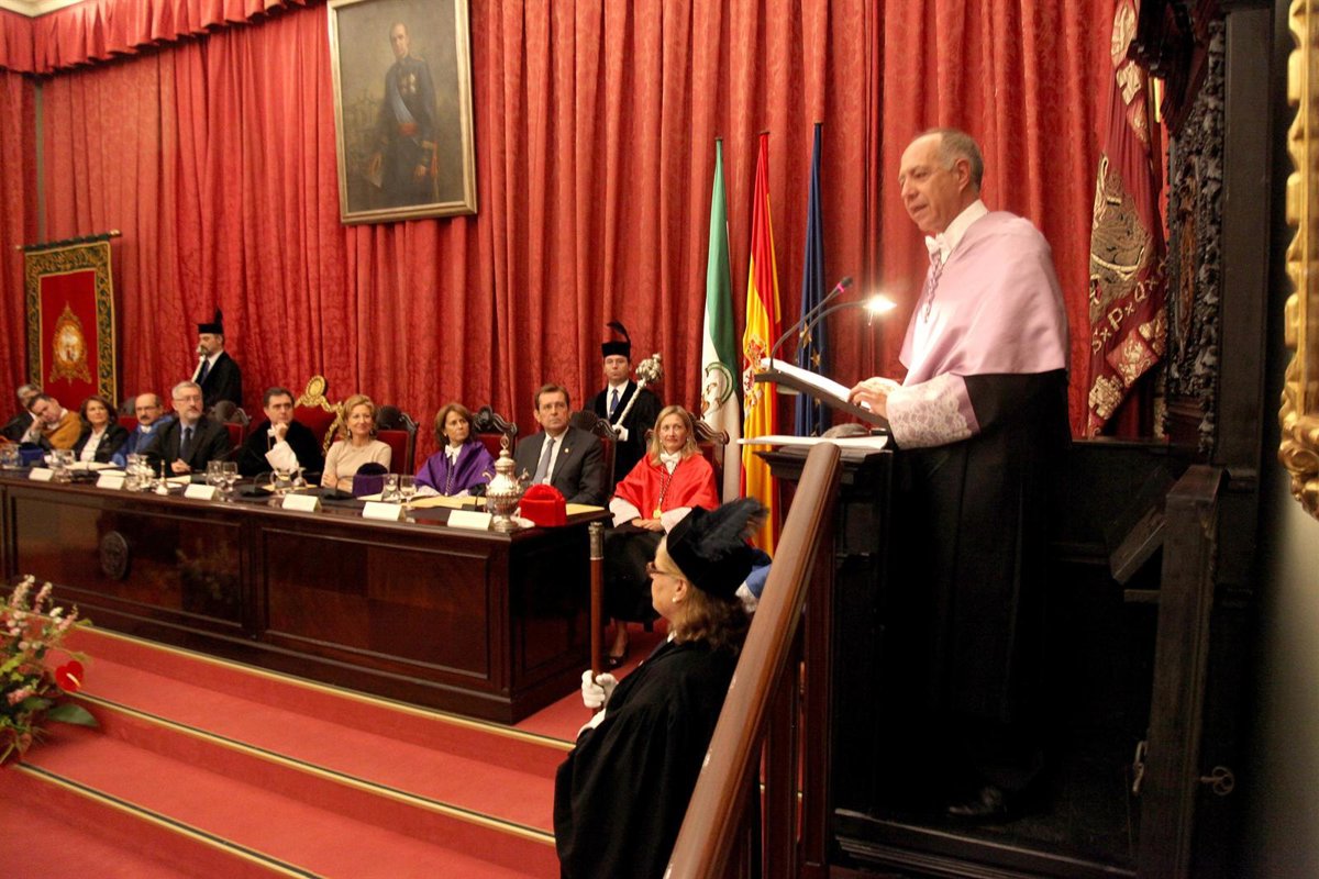 El rector retomó el escenario de la actual crisis financiera en su discurso al comprometerse a abordar los nuevos retos "desde la austeridad, desde la contención del gasto, la eficiencia en la gestión, la imaginación y la creatividad".
