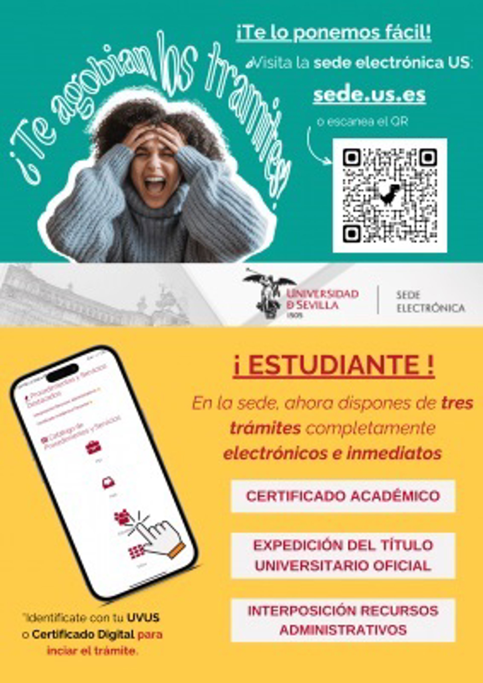 Anuncio de los nuevos trámites administrativos que se pueden hacer por vía telemática en la Universidad de Sevilla. - UNIVERSIDAD DE SEVILLA