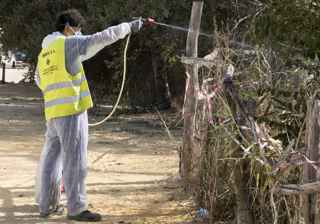Una persona lleva a cabo tratamientos para combatir el virus del Nilo. - AYUNTAMIENTO DE UTRERA