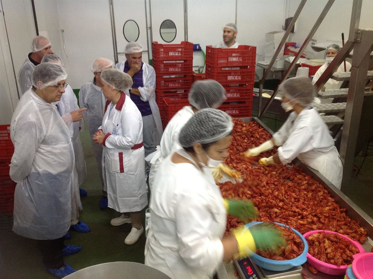Posteriormente, se ha trasladado al centro de elaboración y transformación de productos pesqueros y acuícolas 'Emfacar' S.L, especializado en productos elaborados con cangrejos y camarón de río.