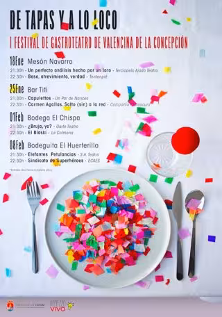 El Ayuntamiento de Valencina de la Concepción (Sevilla), a través de la Delegación Municipal de Cultura, ha organizado el I Festival de Gastroteatro bajo el lema 'De Tapas y a lo Loco'.