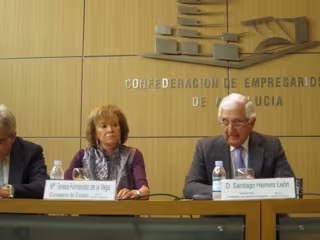 La exvicepresidenta Primera del Gobierno María Teresa Fernández de la Vega ha defendido lo público -"Estado, política y lo público"-- frente a la "receta" de recortar porque "las soluciones solo pueden venir desde lo público" y ha afirmado que el Estado del Bienestar "no es un lujo", según ha señalado en la conferencia 'Crisis, política y mujeres', organizada por la Escuela Andaluza de Economía.