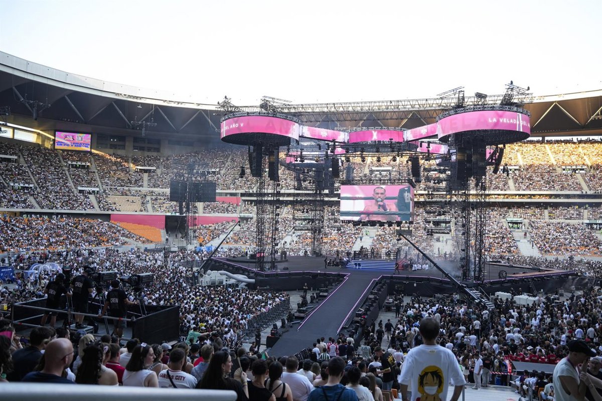 La quinta edición de la 'Velada del Año', uno de los eventos con mayor repercusión en el mundo del entretenimiento en streaming, organizada por el creador de contenidos Ibai Llanos, reunió este sábado a 80.000 espectadores en La Cartuja y a nueve millones en Twitch, en una noche donde hubo boxeo, música y espectáculo.