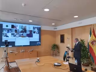 El presidente de la Diputación de Sevilla, Fernando Rodríguez Villalobos, en una videoconferencia durante la pandemia - DIPUTACIÓN DE SEVILLA - Archivo
