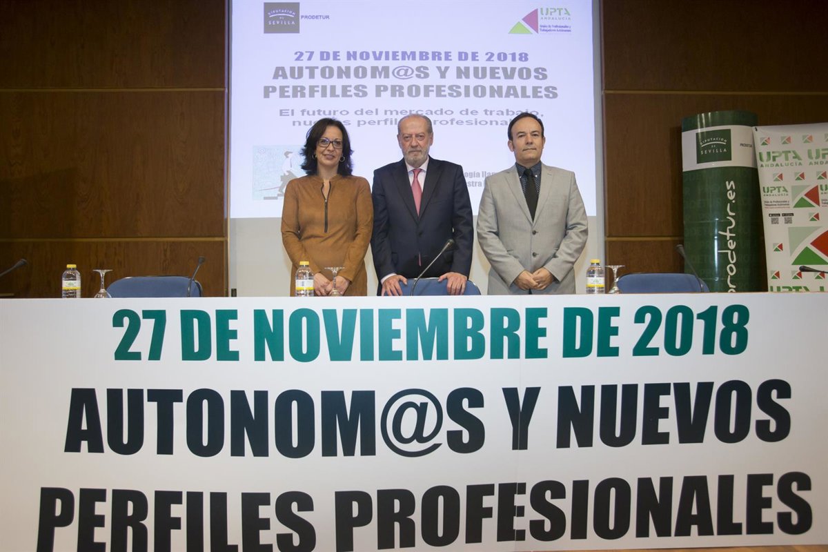 El presidente de la Diputación de Sevilla, Fernando Rodríguez Villalobos, ha participado en la apertura de la jornada 'Autónom@s y nuevos perfiles profesionales. El futuro del mercado de trabajo', organizada por Prodetur con la colaboración de la Unión de Profesionales y Trabajadores Autónomos de Andalucía (UPTA Andalucía).