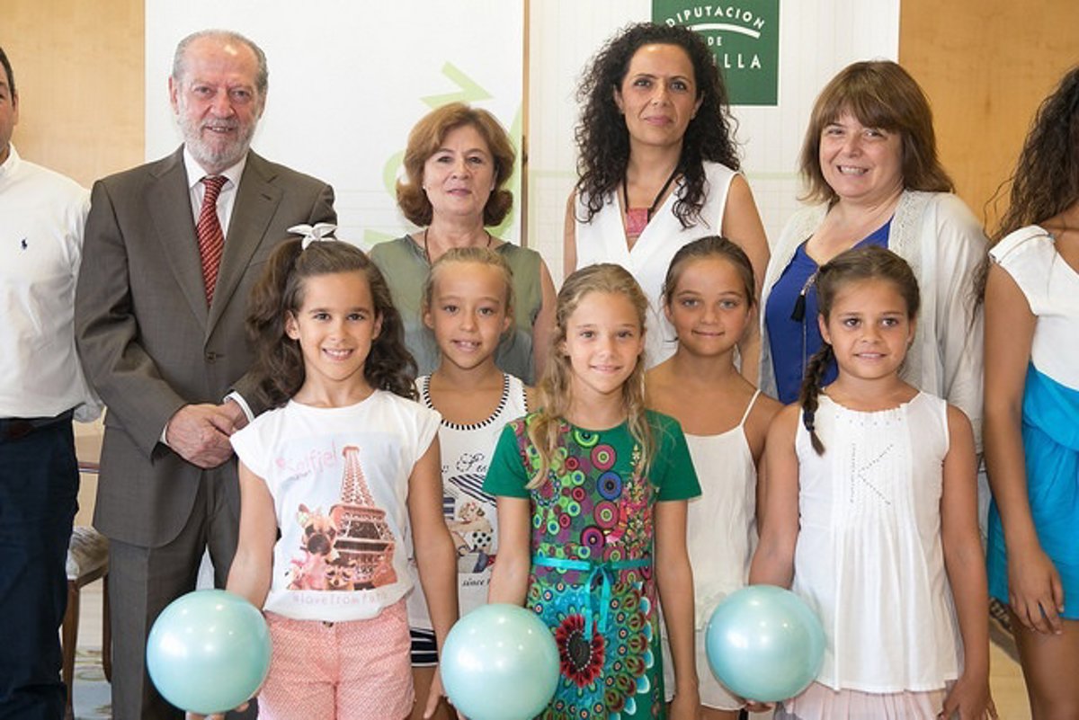 El presidente de la Diputación de Sevilla, Fernando Rodríguez Villalobos (PSOE), ha recibido este miércoles a las gimnastas Ana Sánchez Romero, Felisa Palma Pérez y Pastora González Barrios, de diez años de edad, que han logrado alzarse con el Campeonato de Andalucía de Gimnasia Rítmica y clasificarse en el campeonato de España de conjunto.