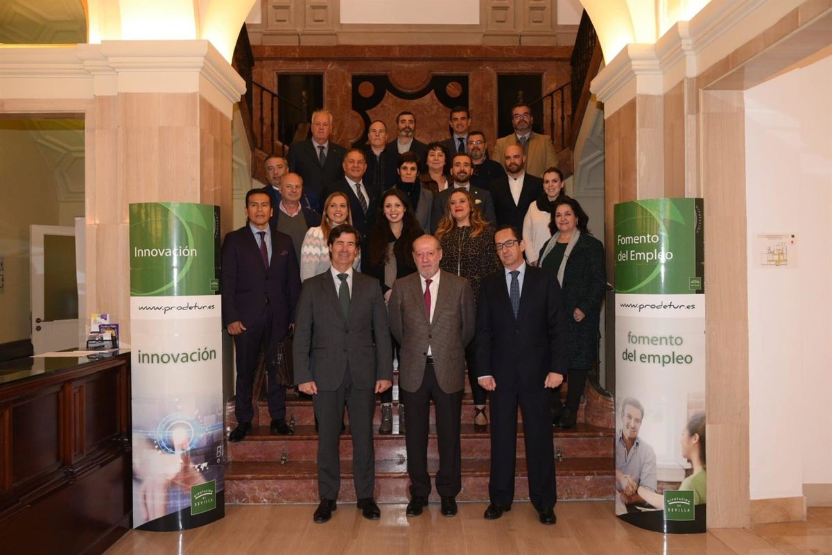 El presidente de la Diputación de Sevilla, Fernando Rodríguez Villalobos, y el presidente de la Confederación de Empresarios de Sevilla (CES), Miguel Rus, han asistido este miércoles a la última reunión del año de la Comisión de Asociaciones Territoriales de la CES, que preside Juan Pedro Calvente y a la que pertenecen asociaciones empresariales locales repartidas por todo el territorio provincial.