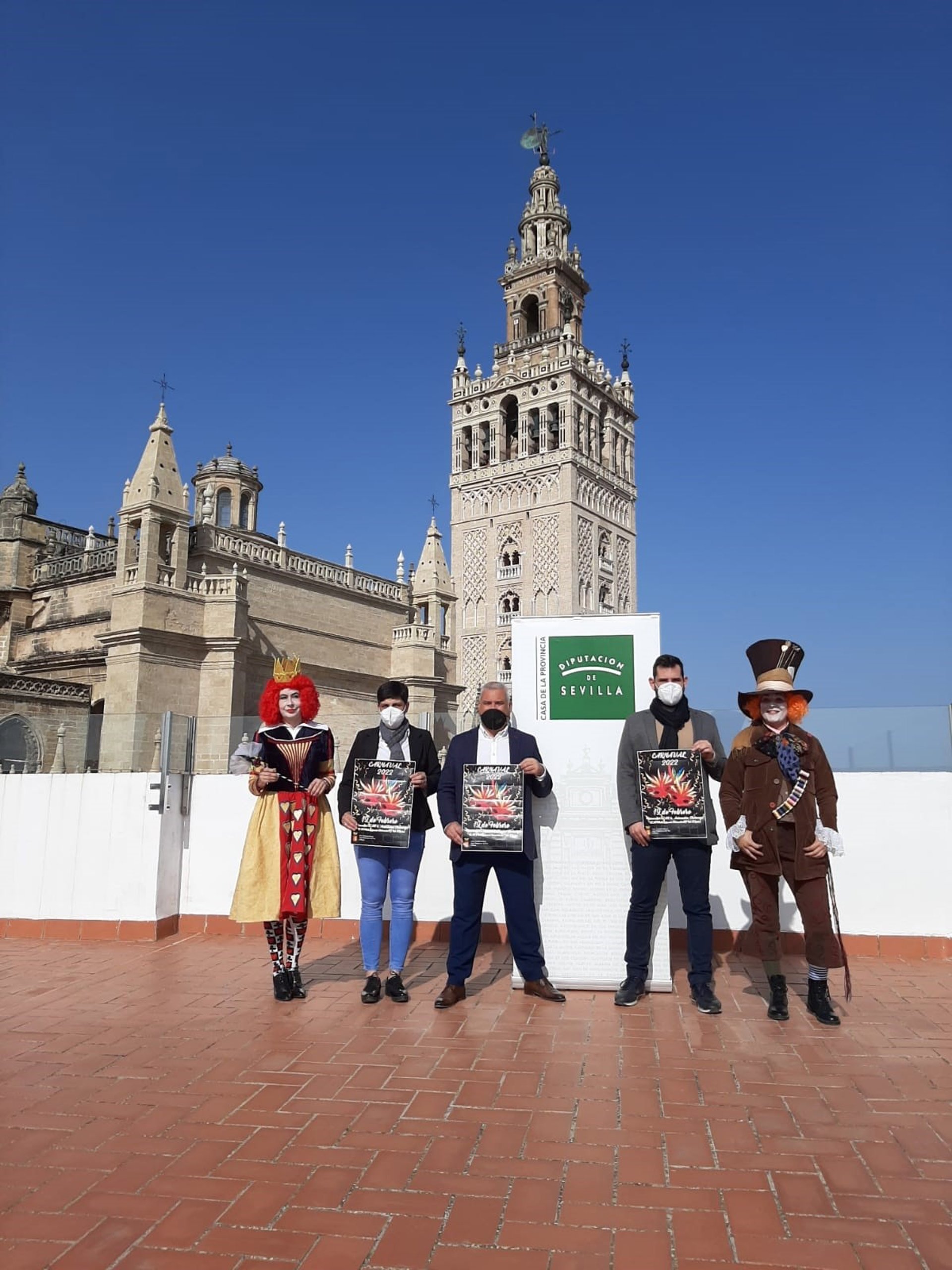 Con el diputado de Cultura y Ciudadanía, Alejandro Moyano, como anfitrión en la Casa de la Provincia de la Diputación, ha presentado el alcalde de la localidad sevillana de Villanueva del Río y Minas, Miguel Ángel Barrios, el cartel del Carnaval Minero de este año, una fiesta colorista y muy particular, organizada por el Área de Festejos del Consistorio y en la que participan de manera individual o en grupos familiares y de amigos los vecinos y vecinas del municipio.