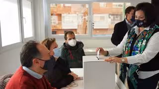 Virginia Pérez vota en una urna electoral establecida en la sede provincial. - PP