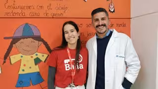 El enfermero de Vithas Sevilla, Armando Román, junto a la monitora de infantil de Fundación Balia Sevilla. - VITHAS SEVILLA