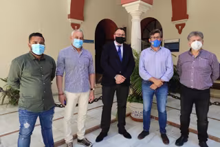 El delegado de Fiestas Mayores del Ayuntamiento de Alcalá de Guadaíra, Enrique Pavón. Con representantes de la Asociación de Feriantes. - AYUNTAMIENTO DE ALCALÁ DE GUADAÍRA.