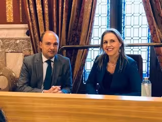 Cristina Peláez y Gonzalo García de Polavieja, en el Salón Colón del Ayuntamiento. - VOX