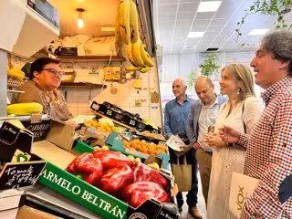 de las políticas del PSOE y de sus socios de la extrema izquierda". En una visita al Mercado del Cerro del Águila, Peláez, acompañada por el número 2