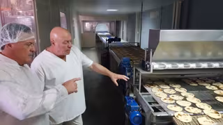 El diputado provincial de Vox en la Diputación, Rafael García, visita la fábrica de tortas Andrés Gaviño, en la localidad de Espartinas. - VOX