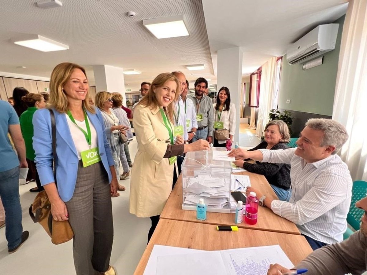 La candidata de Vox a la Alcaldía de Sevilla, Cristina Peláez, ejerciendo su derecho al voto en Heliópolis. - VOX