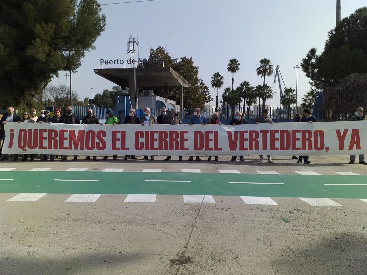 Concentración en el puerto de Sevilla contra el vertedero de Nerva y la llegada de residuos de Montenegro - IU.