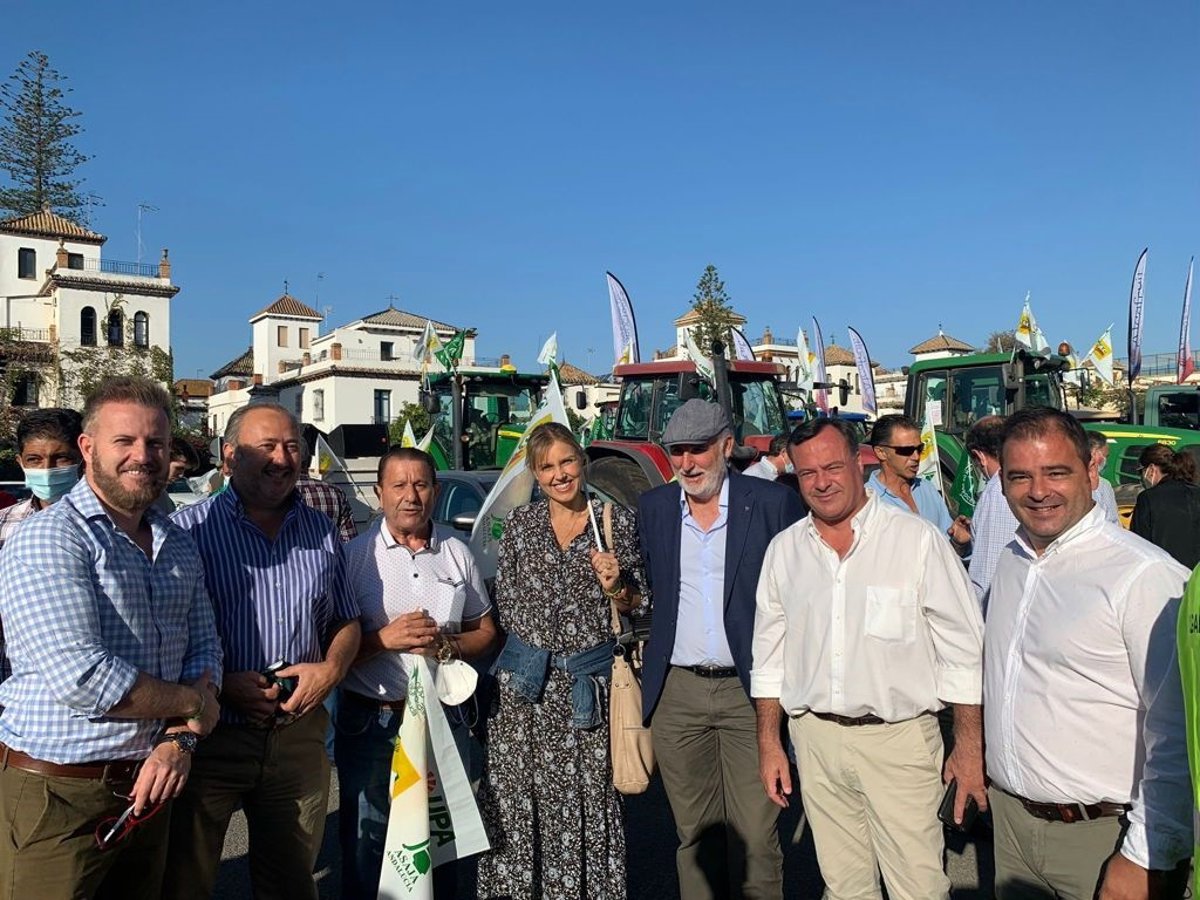 El presidente del Grupo de Vox en el Parlamento de Andalucía, Macario Valpuesta, junto al diputado provincial Rafael García Ortiz y otros concejales de la provincia de Sevilla, ha participado este jueves en la manifestación promovida por Asaja, COAG, UPA y Cooperativas Agroalimentarias, en defensa de una Política Agraria Común (PAC) "justa" y en protesta por "el incumplimiento del ministro del ramo, Luis Planas, con la realidad y la diversidad productiva del campo andaluz".