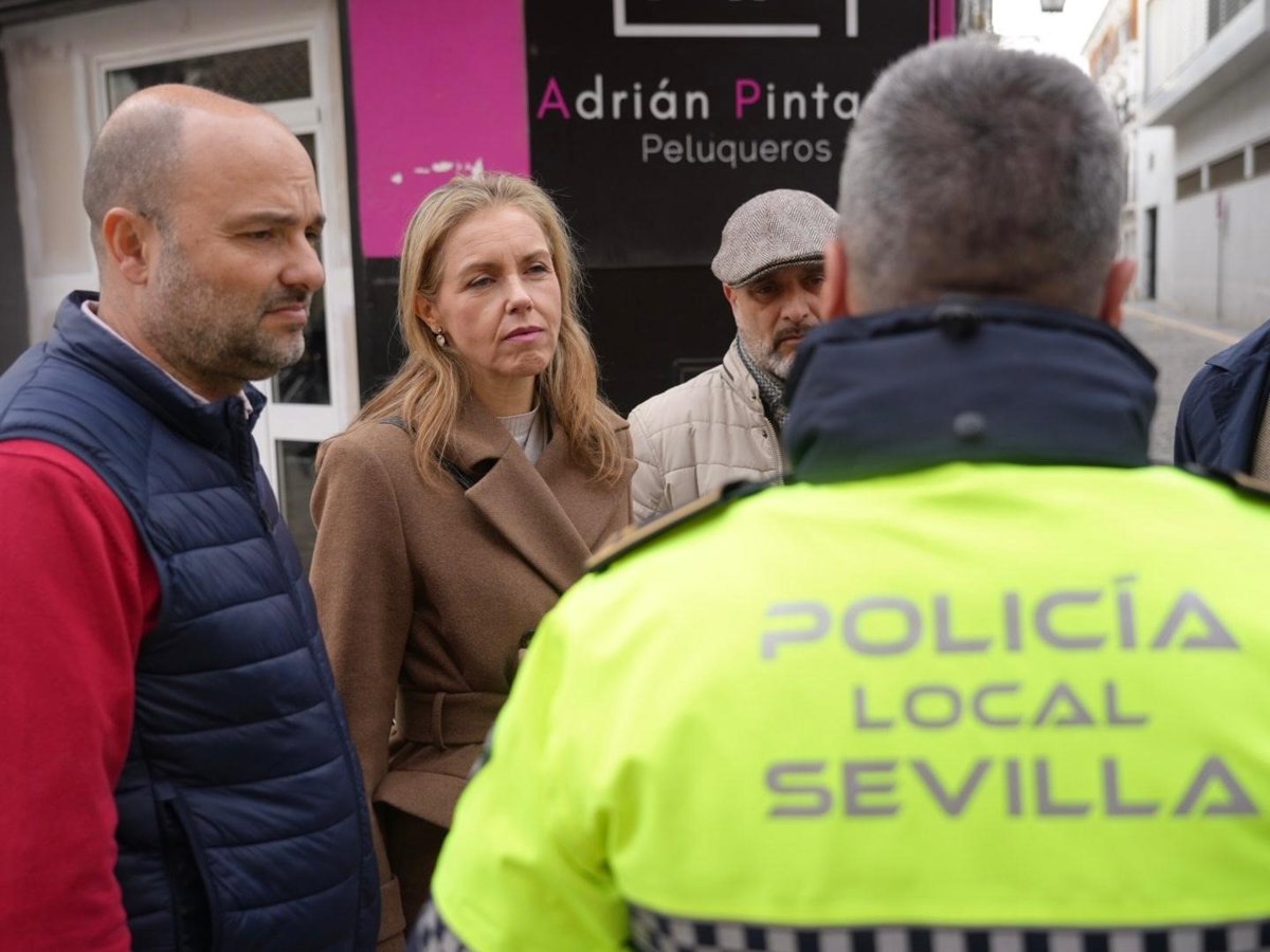 La portavoz de Voz en el Ayuntamiento de Sevilla, Cristina Peláez, con un agente la Policía Local. - VOX SEVILLA