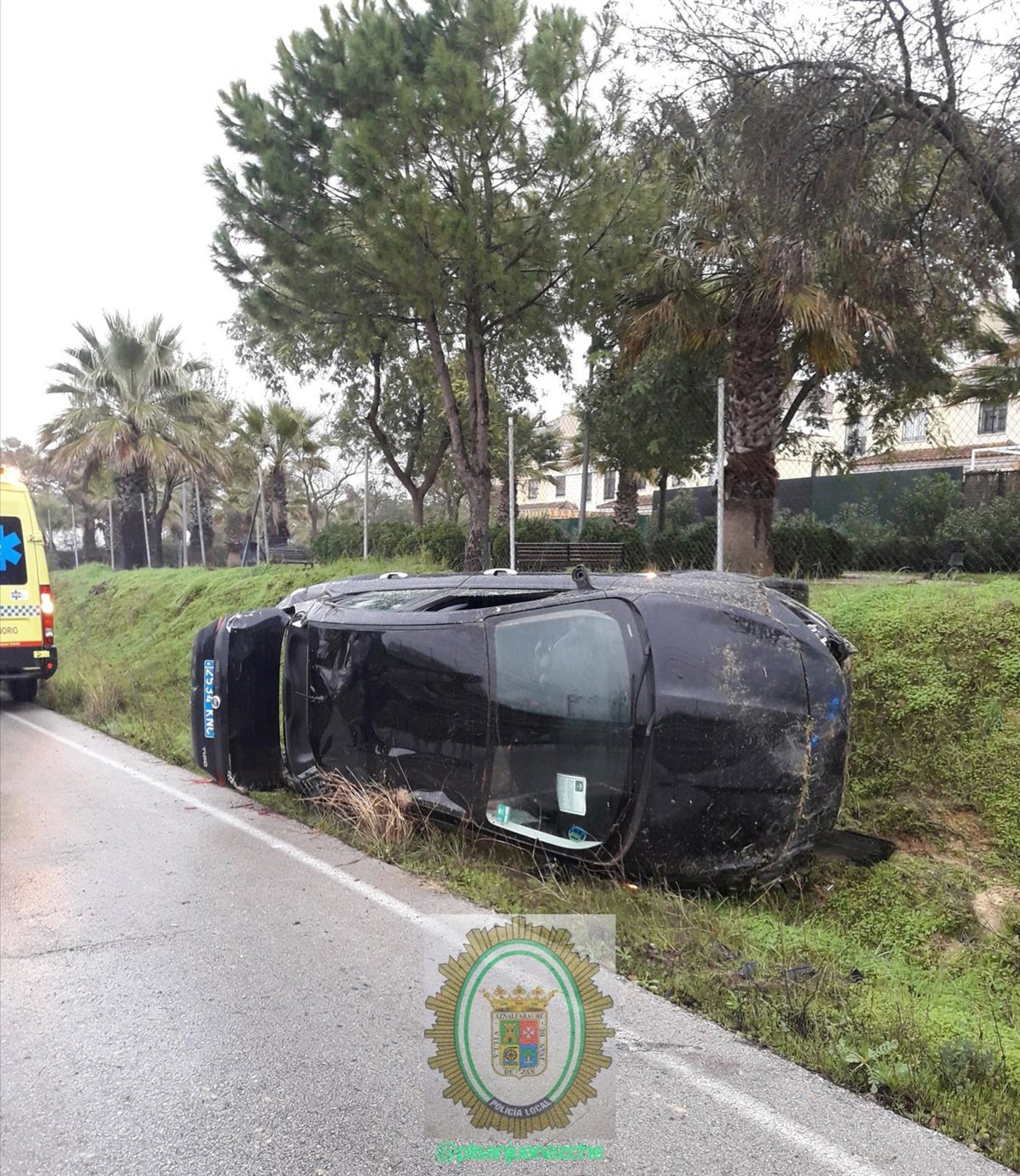 Un vehículo de transporte concertado (VTC) ha sufrido una salida de vía con posterior vuelco en San Juan de Aznalfarache (Sevilla) cuando circulaba por la vía de servicio de la calzada descendente de la autovía A-8057, que conecta Mairena del Aljarafe y dicha localidad con la autovía A-8058 (Sevilla-Coria del Río).