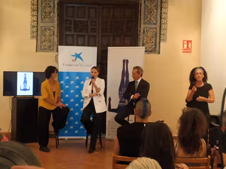 La delegada de Cultura, Minerva Salas, segunda por la derecha, en la presentación de la XVI edición del Festival Escena Mobile en el Espacio Santa Clara. - AYUNTAMIENTO DE SEVILLA