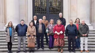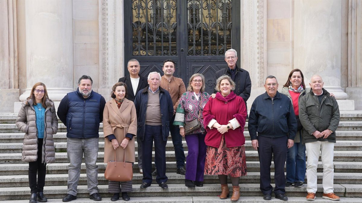 Foto de familia del equipo desplazado a Madrid, con la alcaldesa de Bollullos (en el centro de la imagen) al frente, a las puertas del Museo Arqueológico Nacional. - AYTO.DE BOLLULLOS