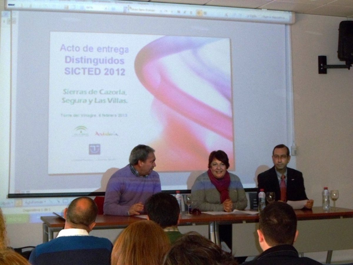 La directora general de Calidad, Innovación y Fomento del Turismo, Manuela González, acompañada del delegado territorial de Fomento, Vivienda, Turismo y Comercio, Juan Antonio Sáez, y junto al alcalde de Santiago-Pontones, Pascual González, ha entregado hoy los diplomas a varias de las empresas que han recibido el distintivo Sicted y subrayó la implicación de los agentes públicos y privados de los 26 municipios que integran el Programa de Revitalización Turística e Impulso Económico que la Junta tiene en marcha en esta zona.