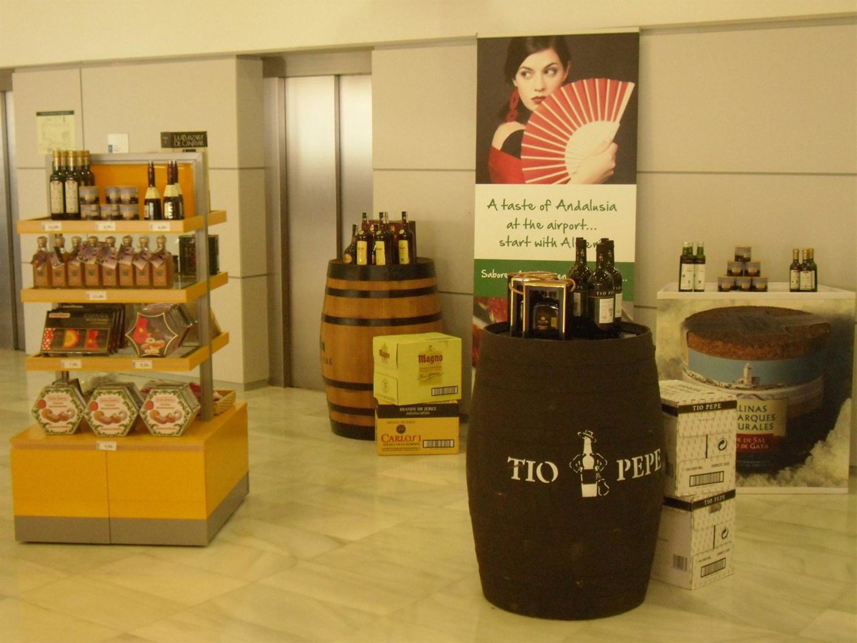 Hasta finales del próximo mes de septiembre, los pasajeros que transiten por la sala de embarque podrán probar y adquirir una variada oferta de artículos, que abarca desde vino fino, brandy y licores, hasta aceite de oliva, mermeladas o conservas.