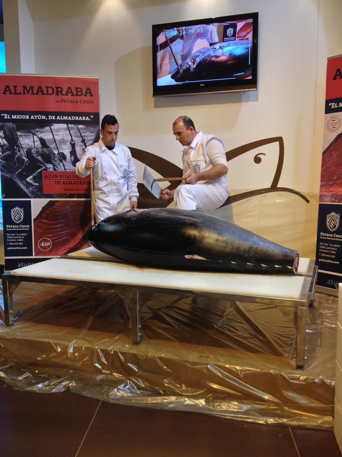 La Ruta Milenaria del Atún, "un proyecto turístico integral" promovido por el Grupo de Desarrollo Pesquero Cádiz-Estrecho y desarrollado por asociaciones de empresarios y comerciantes de las localidades gaditanas de Conil de la Frontera, Barbate, Zahara de los Atunes y Tarifa, se ha presentado este jueves en la Feria Internacional de Turismo de Madrid (Fitur) con el ronqueo de un atún rojo salvaje de 200 kilos.