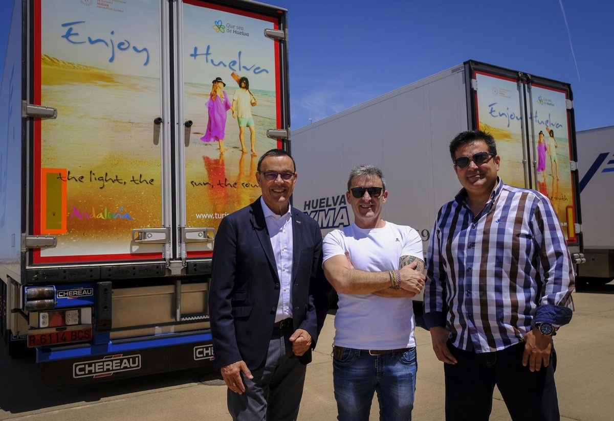 El presidente de la Diputación de Huelva, Ignacio Caraballo, ha señalado que esta iniciativa se enmarca también dentro de la campaña Que sea de Huelva y servirá para que "los camiones que transportan productos de máxima calidad de muestra provincia como las fresas, el pescado o el marisco, publiciten la calidad de ofrecen nuestras playas, bajo el lema Disfruta Huelva, de la luz, del sol y del sur".