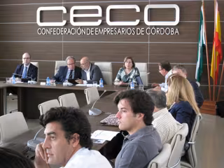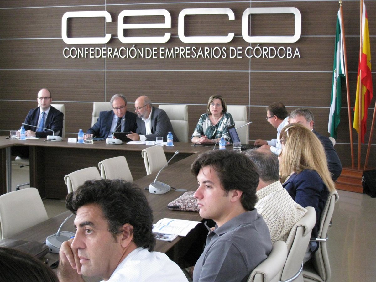 Antonio Roldán, acompañado por la delegada de Fomento, Vivienda, Turismo y Comercio de la Junta, María de los Santos Córdoba, ha hecho este llamamiento durante un encuentro con empresarios en la sede de la Confederación de Empresarios de Córdoba (CECO), con la asistencia de su presidente, Luis Carreto.