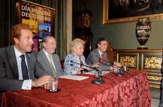 El presidente de la Diputación, Fernando Rodríguez Villalobos, ha participado este martes en la presentación del programa de actos conmemorativos del Día Mundial del Turismo junto a la segunda teniente de alcalde, concejal de Fiestas Mayores y Turismo y presidenta del Consorcio Turismo de Sevilla, Rosamar Prieto-Castro, el delegado provincial de Turismo de la Junta, Francisco Obregón, y el presidente de la Comisión de Turismo de la CES, Manuel Otero.