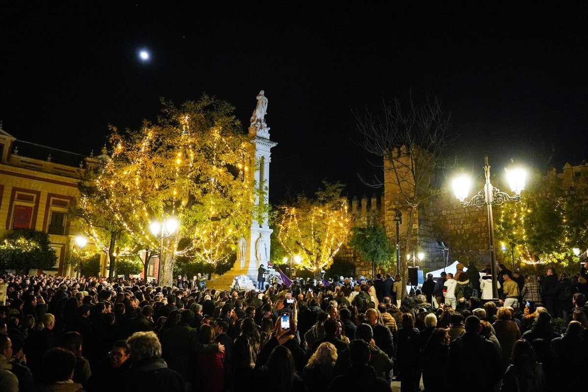 Imágenes de las tunas universitarias rondando en Sevilla a los pies de la imagen de la Inmaculada Concepción, una de las actividades celebradas en Andalucía durante el puente de diciembre. - Joaquin Corchero - Europa Press
