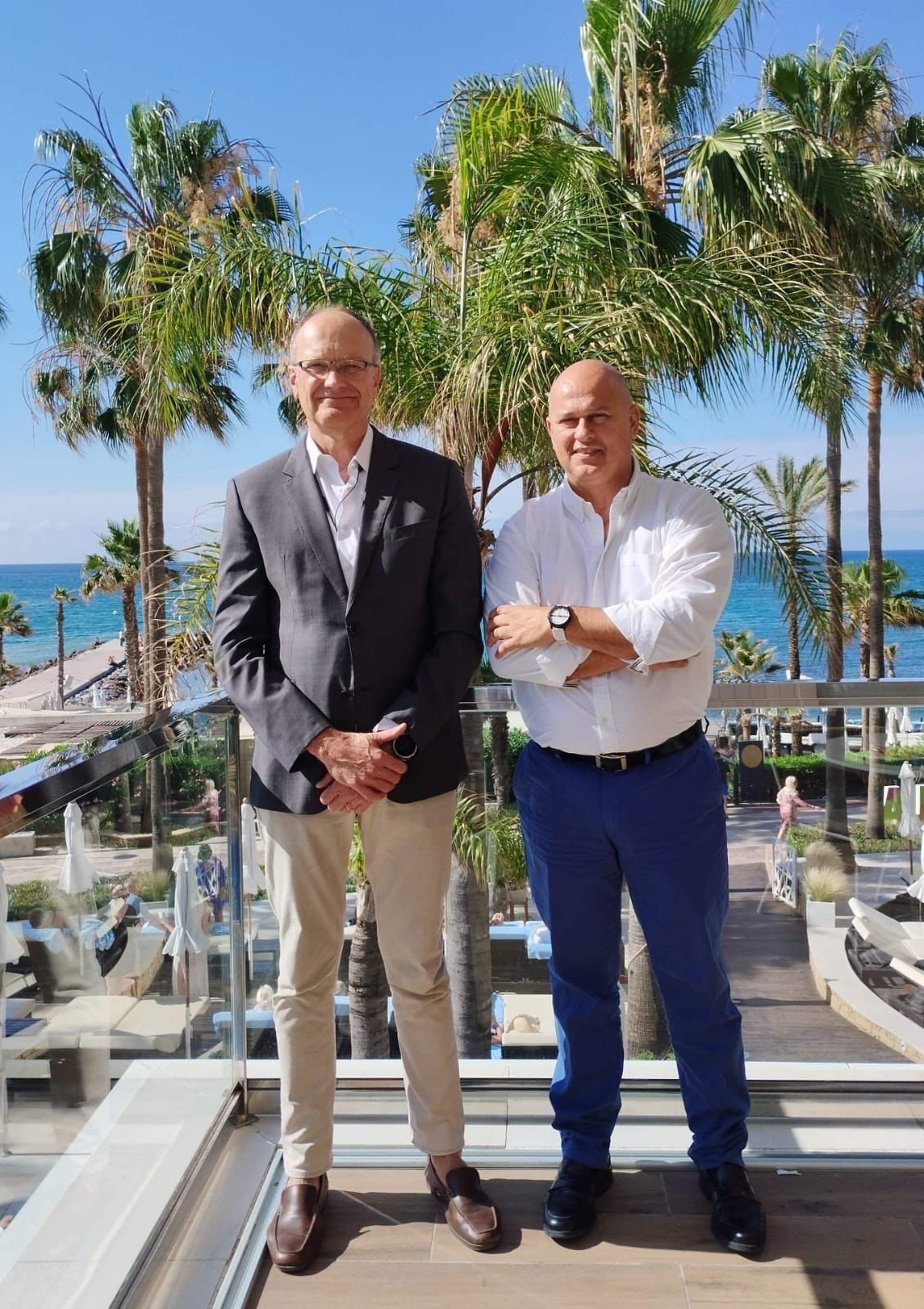 El presidente de la Asociación de Empresarios Hoteleros de la Costa del Sol (Aehcos), José Luque; y el presidente de la Asociación Pequeña y Mediana Empresa San Pedro de Alcántara (Apymespa) Miguel Ángel Jiménez - AEHCOS