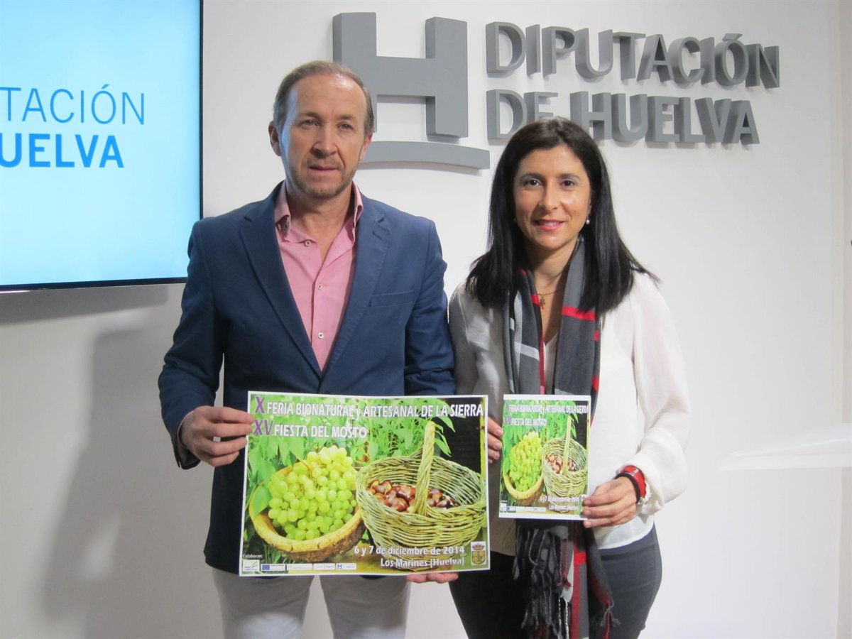 La diputada de Desarrollo Local, Innovación, Medio Ambiente y Agricultura de la Diputación de Huelva, Esperanza Cortés, y el alcalde de Los Marines, José Ramón Rodríguez, han presentado este jueves la programación de la XV Fiesta del Mosto y la X Feria Bionatural, que este año se celebra desde este sábado hasta el domingo, coincidiendo con el festividad del puente de la Constitución.