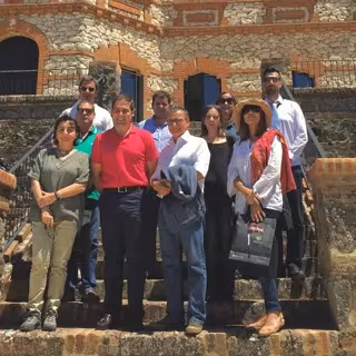 La visita al Centro de Promoción e Innovación del Ibérico alojado en el Edificio el Tiro de Jabugo, no dejó indiferente a los miembros del grupo; con su espectacular fachada de ladrillo visto, obra del afamado arquitecto Aníbal González, que sorprendió gratamente a los periodistas.