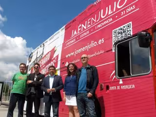 La campaña de promoción de 'Jaén en julio' incluye este año entre sus novedades un autobús de dos plantas que recorrerá durante los próximos días cerca de 40 ciudades andaluzas y jiennenses para dar a conocer los cinco festivales que conforman esta iniciativa turística y cultural que impulsan la Diputación y la Junta.