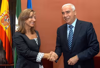 El consejero de Turismo, Comercio y Deporte, Luciano Alonso, junto a la alcaldesa jerezana, Pilar Sánchez (PSOE), explicó que además la Junta colaborará con el Ayuntamiento asumiendo de nuevo el pago del canon para la disputa de la competición por importe de cinco millones de euros.