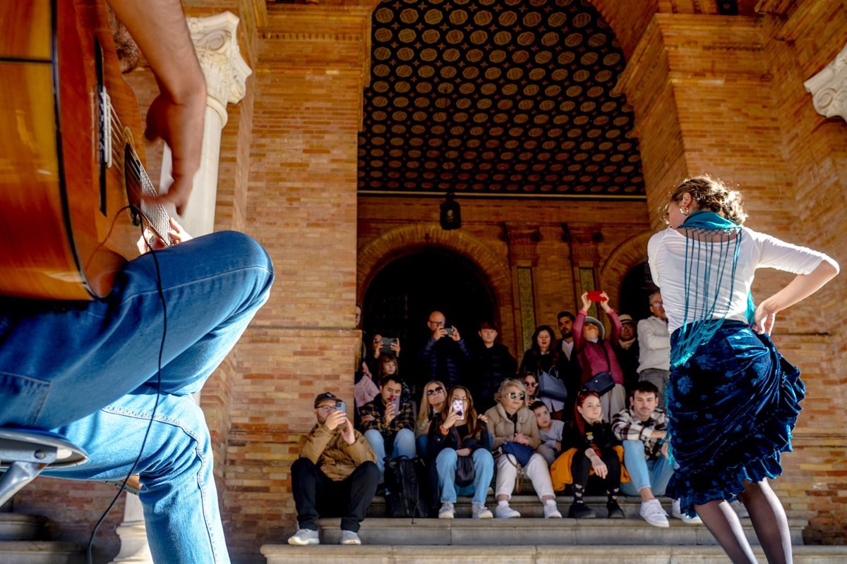 Espectáculo flamenco en los soportales de la Plaza de España a 03 de enero del 2023 en Sevilla (Andalucía, España), foto de archivo - Eduardo Briones - Europa Press