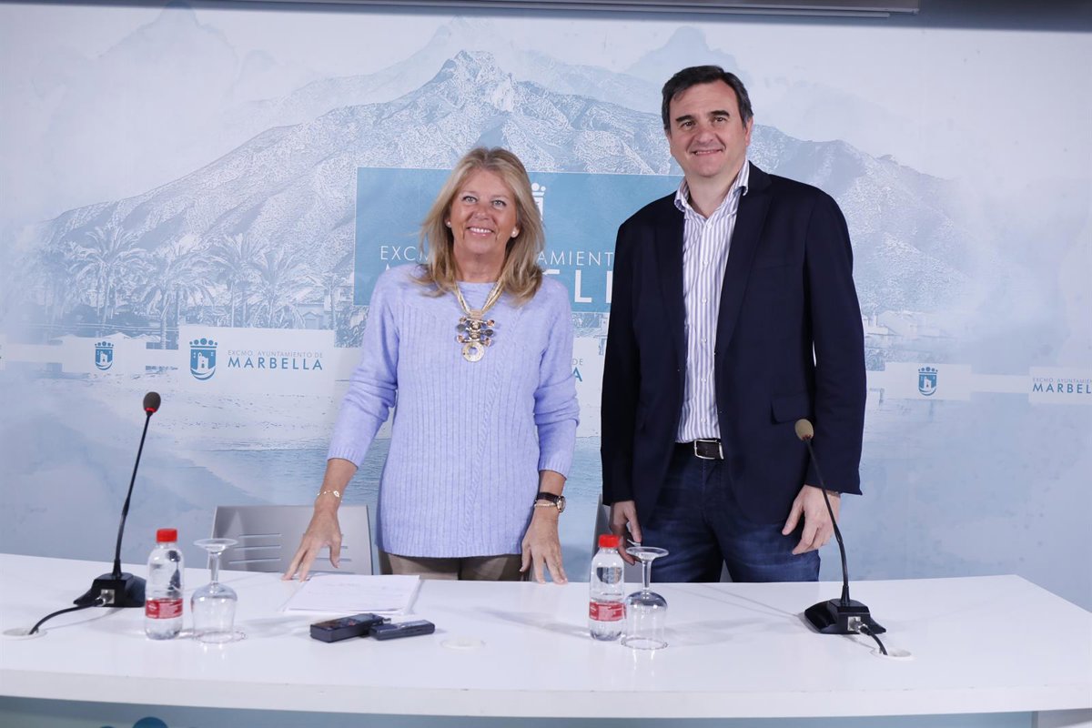 La alcaldesa de Marbella, Ángeles Muñoz, y la portavoz del equipo de gobierno, Félix Romero, en rueda de prensa - AYUNTAMIENTO DE MARBELLA