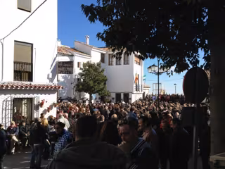 Tras la eucaristía, ha tenido lugar la procesión del Santo por las calles de Comares al son de la banda de música y ya a las 14.00 horas, los asistentes han podido degustar, entre otros productos, chacina, queso y vino del terreno en la plaza 'Balcón de la Axarquía'. En este mismo lugar también se ha dado a probar una paella popular; todo ello amenizado por las pandas de verdiales 'Arroyo Concas', 'Maroto' y la orquesta 'Antídoto'.